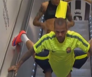 Para acceder el campo de juego dejó de lado la etiqueta y bajo las escaleras a su estilo.