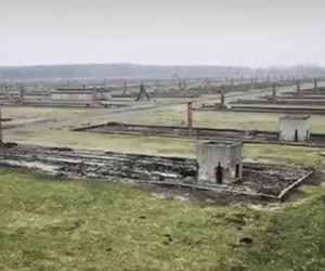 En las imágenes usted podrá ver el triste paisaje del campo desde los aires, las vías del tren por las que llegaban los judios, los edificios abandonados, y el rastro de lo que alguna vez fueron casetas.