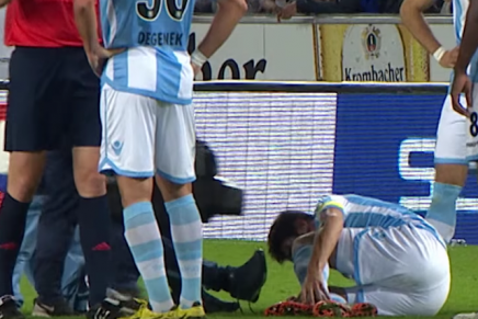 En el juego por la Bundesliga 2 entre Arminia Bielefeld y TSV 1860 München, el médico fue a atender a un jugador del equi´po puesto que estaba tendido en el campo. sin embargo, el médico resbaló y en lugar de atenderle logró golpearlo cuando ya estaba en el sueño.