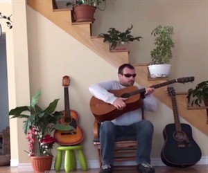 Tras acomodar su cámara, un músico empezó a grabarse… su gata se acomodó en la silla donde él necesitaba sentarse y la quitó de la peor manera.