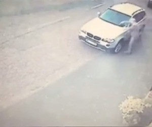 En el video se puede ver que el hombre llega muy seguro de sí mismo y vierte el líquido con el que pretendía hacer carbón al BMW, pero casi al mismo tiempo se acerca la flama y las cosas se salieron de control.