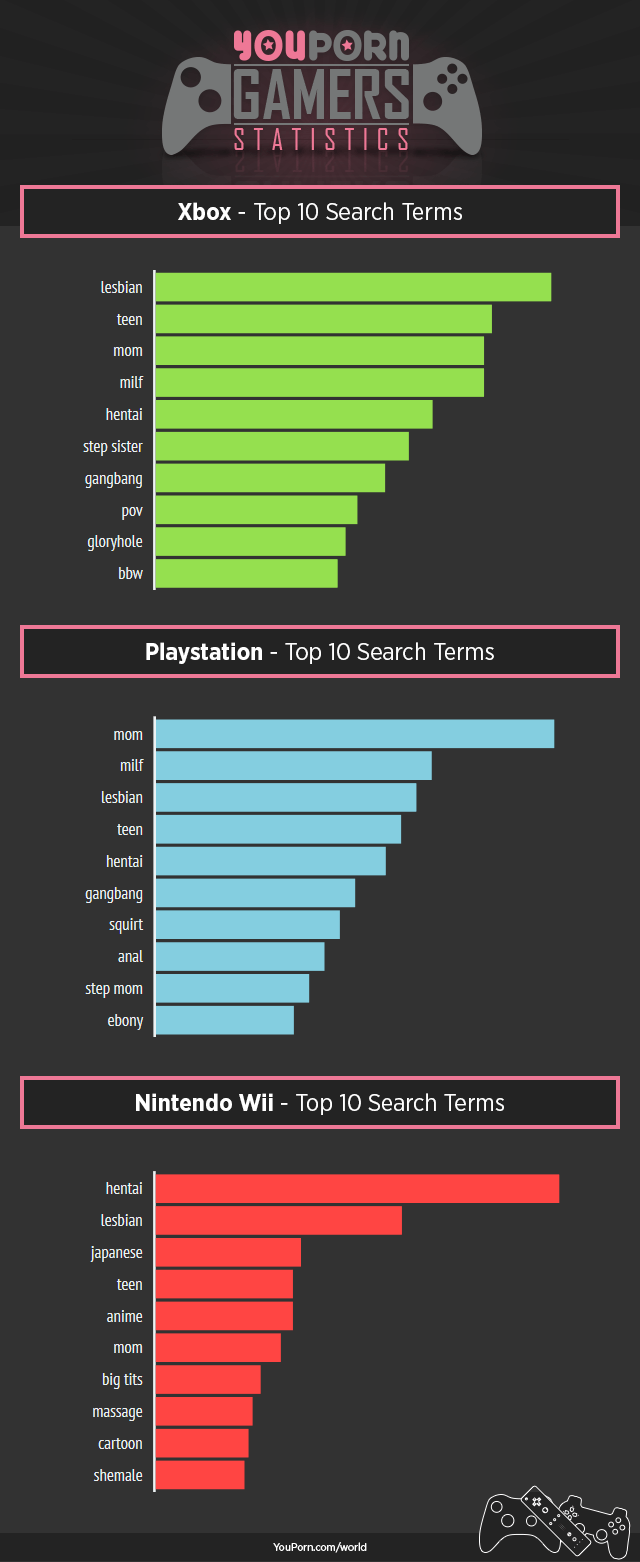 – Las categorías más buscadas por los gamers que visitan YouPorn desde PlayStation es la de MILF’s. Los usuarios de Xbox consumen más videos de lesbianas y los asiduos a Nintendo Wii prefieren el hentai.