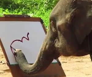 Estos elefantes particulares tienen el talento de pintar usando sus troncos para sostener el pincel.