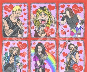 “Dile a la persona que amas lo que sientes realmente con la ayuda de estos legendarios titanes del metal. Estas tarjetas vintage de San Valentín incluyen nueve diferentes diseños, y cada pedido contiene tres hojas. ¡27 cartas en total!”, ofrece Molten Metal Merch.