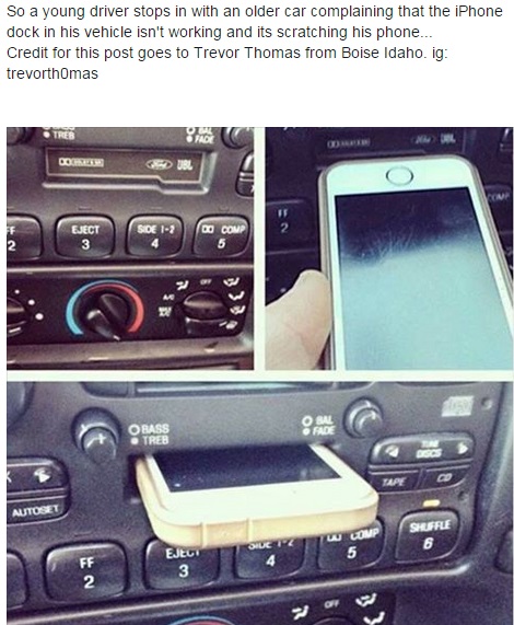La imagen que verá a continuación no tiene una fecha determinada. Realmente fue publicada por un concesionario de carros que se encontró con un chico que no paraba de quejarse porque el reproductor de iPhone del auto que manejaba nomás no servía.
