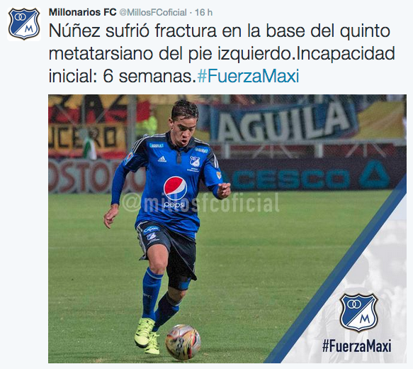 En el partido del domingo frente a Huila, Millonarios no sólo dejó escapar tres puntos vitales, sino que también perdió a uno de sus jugadores más importantes. Maxi Núñez sufrió una fractura del quinto metatarsiano del pie izquierdo y estará de baja, al menos, por seis semanas.