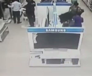 El siguiente video fue grabado en una local que vende electrodomésticos ubicada en Lusaka, Zambia… como pueden observar, la mujer en cuestión se roba una pantalla grande, la cual sólo coloca debajo de su falta y emprende la nada graciosa huida.