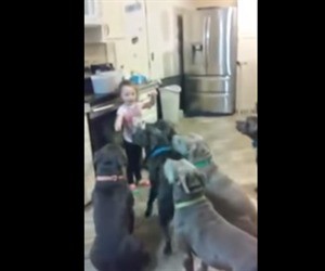 Sin embargo, esta niña de 4 años tiene el chip de líder desde la cuna y lo demostró en este video donde dirige a 6 perros Pitbul que son más grandes que ella.