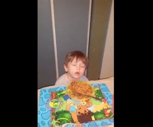 Esto fue lo que le pasó a este pequeñito a quien le cuesta mantenerse despierto para disfrutar de sus espaguetis.