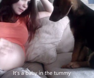 La dueña de este can está en embarazo y decide contarle a su perrito que pronto nacerá una bebé, quien será su hermanita.