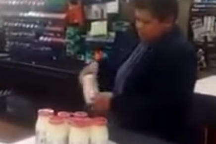 La gran sorpresa se encontró cuando fue registrada por el personal de seguridad y descubrieron que esta doña intentaba irse sin pagar algunos kilos mayonesa.