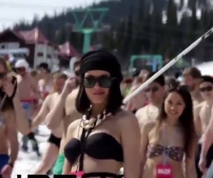 Rusas batieron un nuevo récord al esquiar en bikini (video)