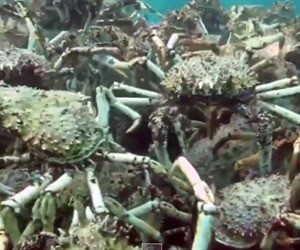 Los cangrejos se apilan unos encima de otros para crear una pirámide.