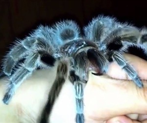 Tener una tarántula como mascota es de valientes, pero más valiente esta mujer que se atrevió a ser picada. Al no ser penetrada por esos afilados colmillos el animal intenta en repetidas ocasiones hacer pero siempre es fallido.