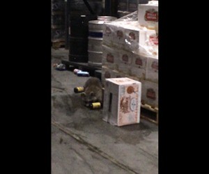 Los trabajadores de una tienda de licores de la ciudad norteamericana de Brooklyn grabaron el momento en que el animal se movía casi sin equilibrio entre los contenedores de bebidas alcohólicas