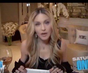 Madonna tuvo a un invitado inesperado durante un video chat con sus fanáticos desde su casa para un show de TV.