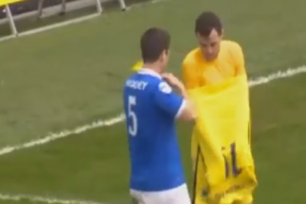 El portero del Linfield cometió penal y fue expulsado. Debido a que el DT ya había agotado todos sus cambios Mark Haughey, un defensor central, decidió ponerse los guantes y su actuación fue espectacular: atajo el penal, que sirvió para que su equipo mantuviera el empate.