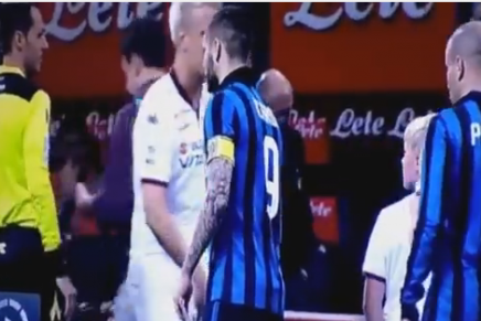 La bien conocida pelea de “faldas” entre Icardi y Maxi López tuvo un capítulo más. Ahora, en los actos protocolarios antes del juego en el que el Torino le ganó al Inter 2-1, Maxi le negó el saludo a la actual pareja de su ex esposa; además de no saludarlo se tocó los genitales, en un gesto que para los argentinos simboliza que la otra persona es mufa, es decir, trae mala suerte o en términos colombianos que “trae la sal”.