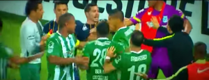 La clasificación de Atlético Nacional a una semifinal de Copa Libertadores después de 21 años terminó empañada por los hechos que se presentaron en el estadio. La celebración de Berrío en la cara del arquero de Rosario hizo que Damián Musto le pegara una patada al jugador de Nacional y estalló el caos.