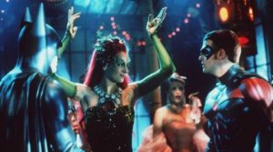 En cierto momento, la errática Poison Ivy, interpretada por Uma Thurman, hace una de sus apariciones desde el interior del traje de un gorila e hipnotiza a todos soplando un polvo mágico como si se tratase de un hada del cuento de Peter Pan.