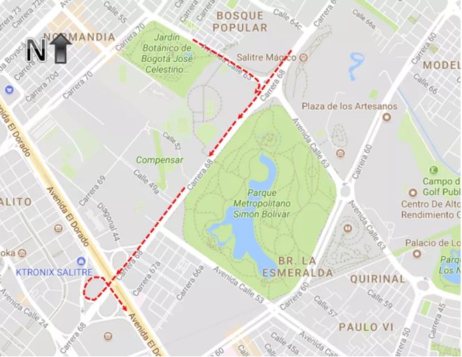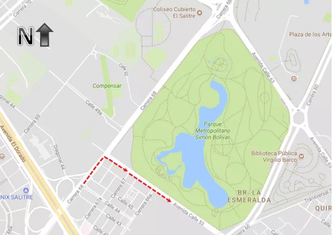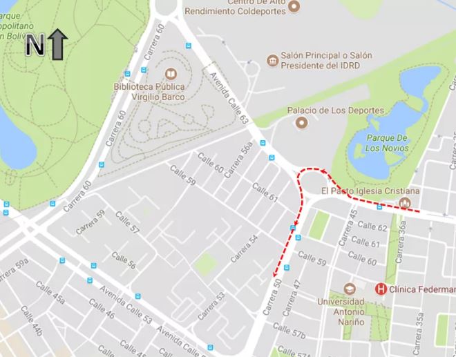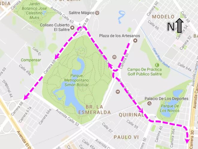 Sentido Norte – Sur por la Av. Carrera 60 deberán tomar por la Av. Calle 63 al Occidente – Av. Carrera 68 al Sur o Calle 63 al Oriente y Av. NQS al Sur.