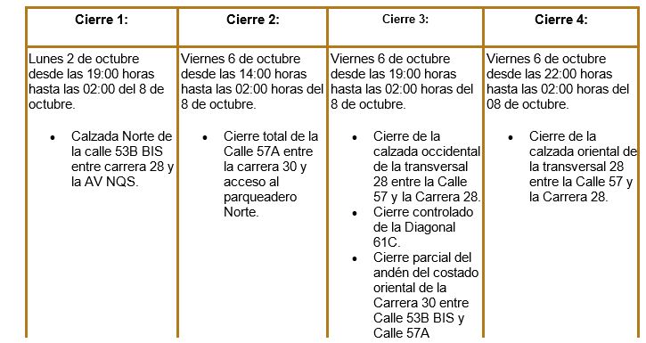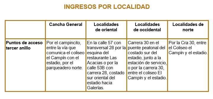 • Calle 59 con Cra 30 costado occidental del estadio, para quienes van hacia el sur