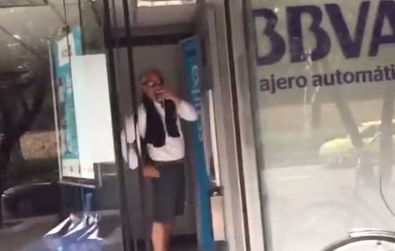El conocido presentador y periodista fue visto dentro de un cajero fumándose un puro mientras retiraba dinero.