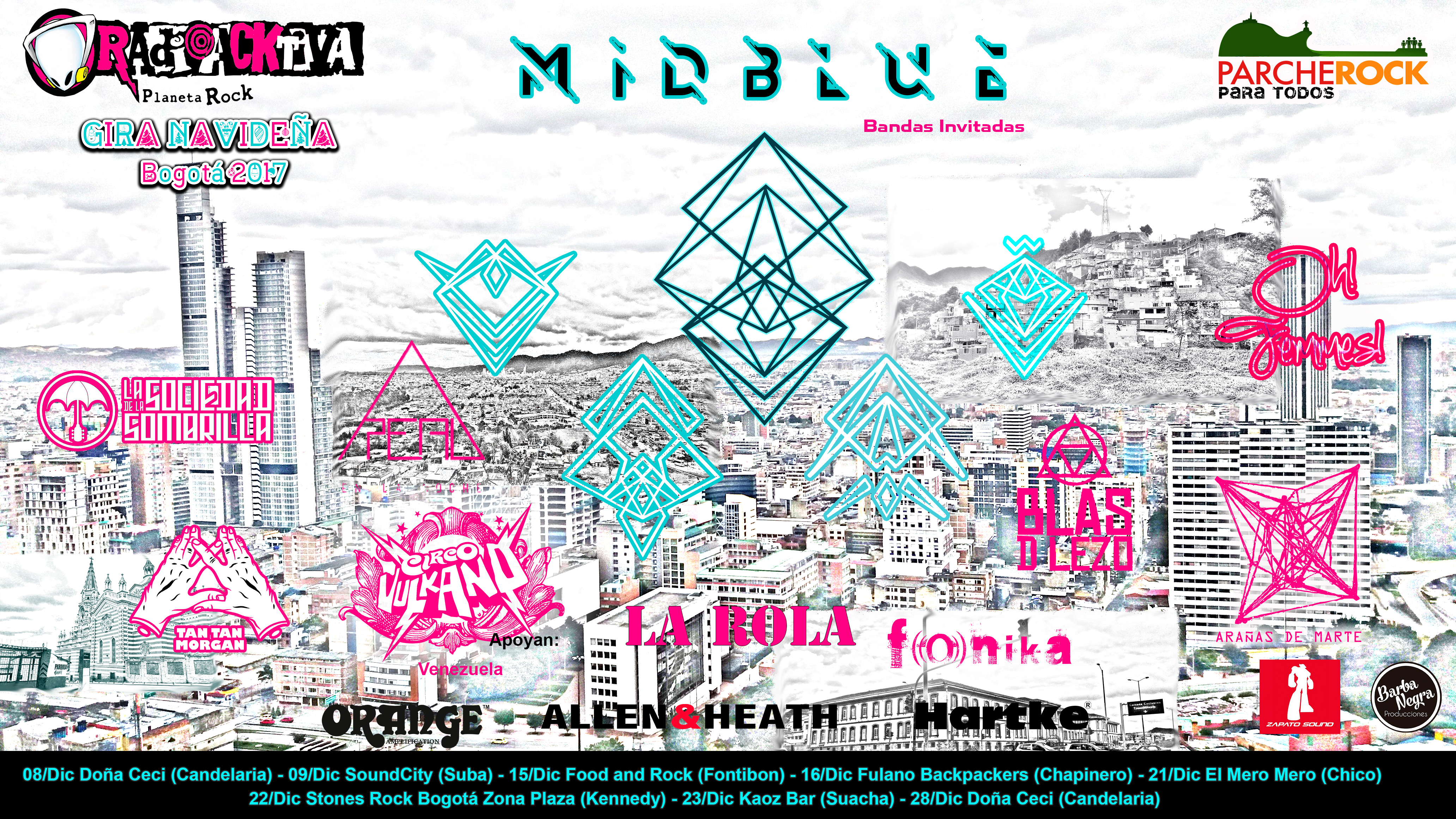 El Rock esta por toda nuestra ciudad, eso es lo que quiere mostrar MIdblue, en su concepto y en el contenido de sus canciones y mensajes visuales. La banda quiere recorrer el circuito local, y estar con varias bandas emergentes y de trayectoria. Tocando en lugares míticos, tradicionales y en varias zonas de la capital. Esta vez, con Radiaocktiva quieren dar una navidad llena de rock para todo el público que ama este género. Con ellos también estarán en toda la gira Oh! Femmes, demostrando la fuerza y el talento en este cuarteto femenino.
