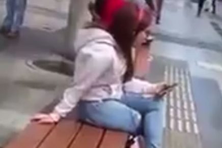 Claramente las personas que pasaban cerca de ella no podían evitar reírse ante el hecho. Véalo por usted mismo y trate de contener la risa.