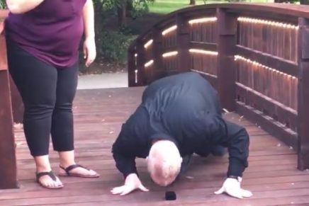 Esto sucedió en Kansas, Estados Unidos. Resulta que Seth Dixon, muy enamorado de su novia, Ruth Salas, decidió arrodillarse en frente de ella en un puente peatonal de madera para pedirle que se casaran.