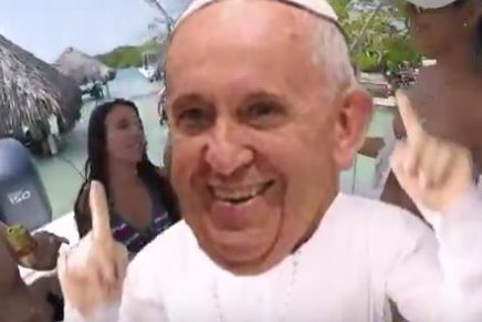 “Qué pena si al papa van a llevar a cenar con lagartos de la ‘high class’” y “Qué pena si a Francisco por el acuerdo le hacen tomar la selfi con Timochenko”, son algunas de las frases que se pueden escuchar en la canción.