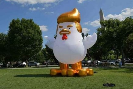 Taran Singh Brar fue la persona que se tomó el tiempo y creó este globo gigante en forma de gallina con el peinado de Trump con la ayuda del artista Seattle Casey Latiolais.