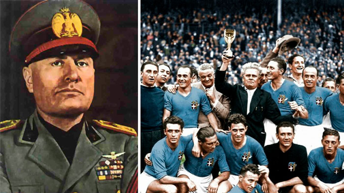 La selección italiana de fútbol del mundial en Francia de 1938 estaba amenazada de muerte por el dictador Benito Mussolini si no ganaban. Por suerte, ganaron ese año.