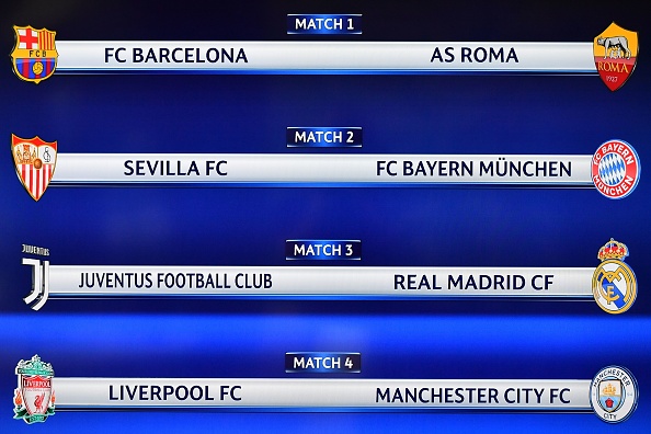 Será el Barcelona el que comenzará la serie en casa frente al AS Roma; el Sevilla arrancará en su casa ante el Bayern Múnich de James Rodríguez. Sin embargo, uno de los partidos más esperados que dejó el cuadro de los cuartos de final fue el de Juventus contra en Real Madrid. Finalmente el duelo de británicos tendrá como protagonistas al Liverpool contra el Manchester City.