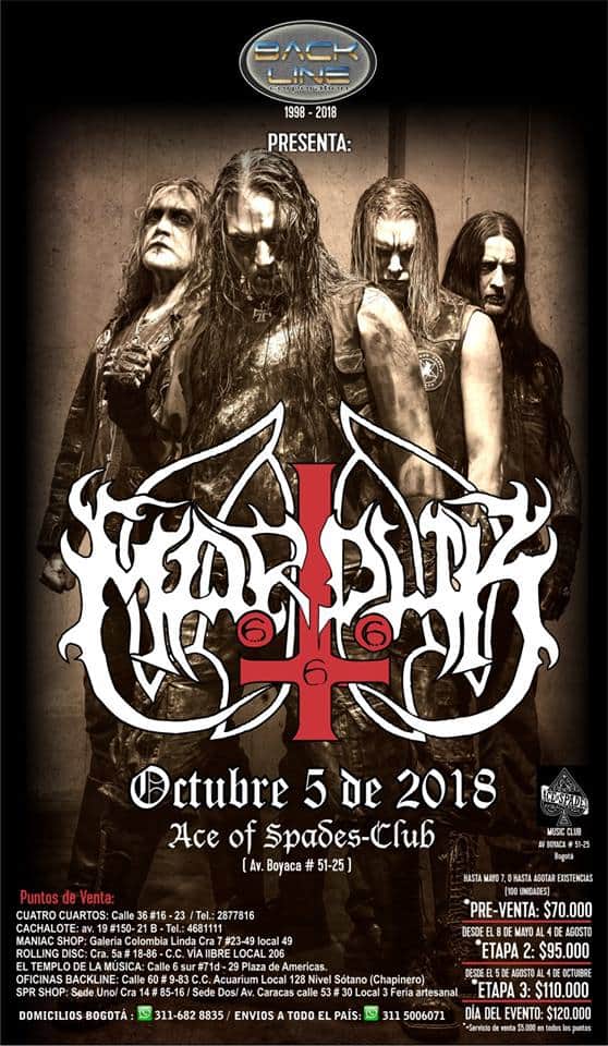 Marduk, una banda sueca de black metal creada en 1990, se presentará en el país los próximos 3 y 5 de octubre en Pasto y Bogotá, algo que sin duda no tiene contentos a los cristianos y católicos, pues la banda es popular en el mundo a causa de sus letras anticristianas y satánicas.