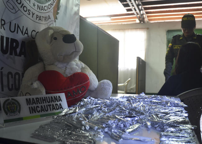 La Policía de Medellín, incautó un oso de peluche con 563 porros (cigarrillos de marihuana), que llevaba una joven de 16 años.