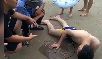 Los bomberos cercanos de una playa en China atendieron el doloroso caso de un bañista el cual fue atacado por una mantarraya que se aferró a su pene y lo obligó a pedir ayuda a gritos.