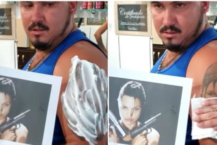 Recientemente, se volvió viral en las redes sociales un video grabado en Itajaí, Brasil, en donde se ve el desastroso tatuaje que se realizó un hombre de su personaje favorito Lara Croft, interpretada por Angelina Jolie.