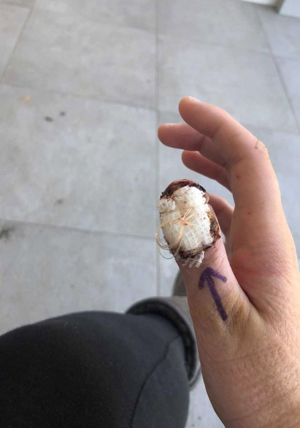 Cuando su uña se agravó, fue a su médico y este le dijo que había adquirido la enfermedad, pero que se solucionaría con quitarle la uña y colocarle un injerto de piel, sin embargo, después de una biopsia y otros exámenes, tuvieron que amputarle el pulgar, pues ya había invadido más el dedo.