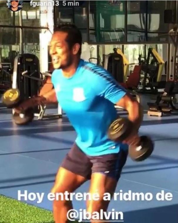 A través de sus historias de Instagram el futbolista le mostró a sus seguidores la manera en la que acostumbraba a entrenar: con música de J Balvin y un poco de mala ortografía.