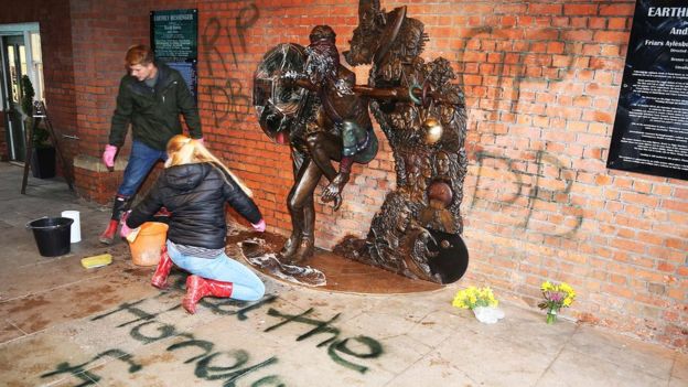 Aquí el video de inauguración de la estatua y la foto después de ser vandalizada: