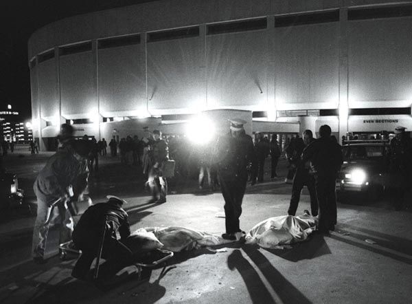 Las personas que querían tener a la banda muy cerca empezaron a empujar y a molestar los fanáticos que estaban primero, algo que desató una lucha por llegar a la tarima, la cual terminó con el saldo de 11 personas muertas por asfixia y algunos heridos.