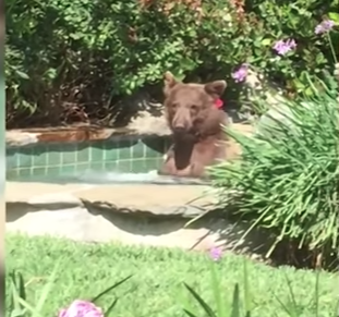 En vídeo se ve claramente cómo un oso negro entra a un jacuzzi y decide tomar un baño como si fuera un humano,el propietario de la vivienda se da cuenta y decide grabarlo pues lo sorprende la actitud tan tranquila del oso mientras toma un baño con burbujas y especialmente lo que más lo sorprende es que la temperatura del agua del jacuzzi ya que era bastante alta, dice Mark Hough, propietario.