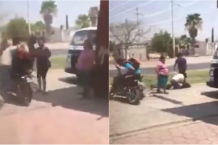 La eufórica escena que se vivió en Ciudad de México registró como la esposa del infiel se abalanza sobre la amante sin importarle que ambos estaban escapando en motocicleta, tirándolos al piso y dándoles golpes hasta el cansancio.
