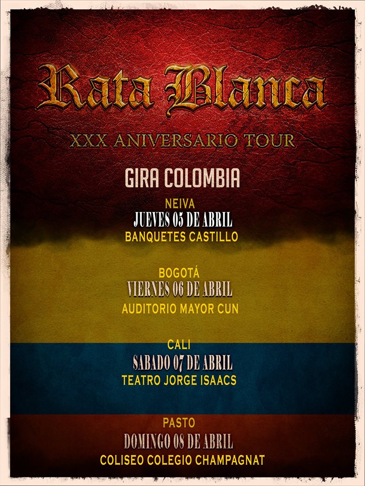 La agrupación argentina, vuelve a Bogotá después de cinco años del gran y legendario concierto que realizaron en el 2013 junto a Kraken, Mago de Oz, Sherpa, Kronos y Burdel King, pero esta vez, Cali, Neiva y Pasto también disfrutaran del heavy metal de Rata Blanca.