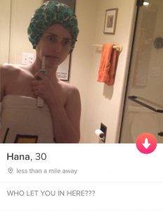 Hana Michel compartió en Twitter la curiosa imagen que tiene de perfil en Tinder y por la que se volvió tan popular. Allí aparece en toalla, con un gorro de baño en la cabeza y un cepillo de dientes en su boca,una foto poco usual para lo que suele haber allí.