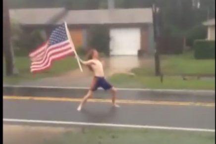 Florida Man, como se hace llamara Pittman, se “enfrentó” al huracán que mató a 50 personas en las Bahamas al ritmo de Raining Blood de Slayer, mientras movía la bandera de Estados Unidos.