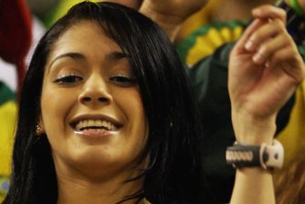 La mujer solo tenía pintada la bandera de Brasil en su cuerpo, robándose todas las miradas de los demás hinchas, quienes pasaron saliva con su figura.