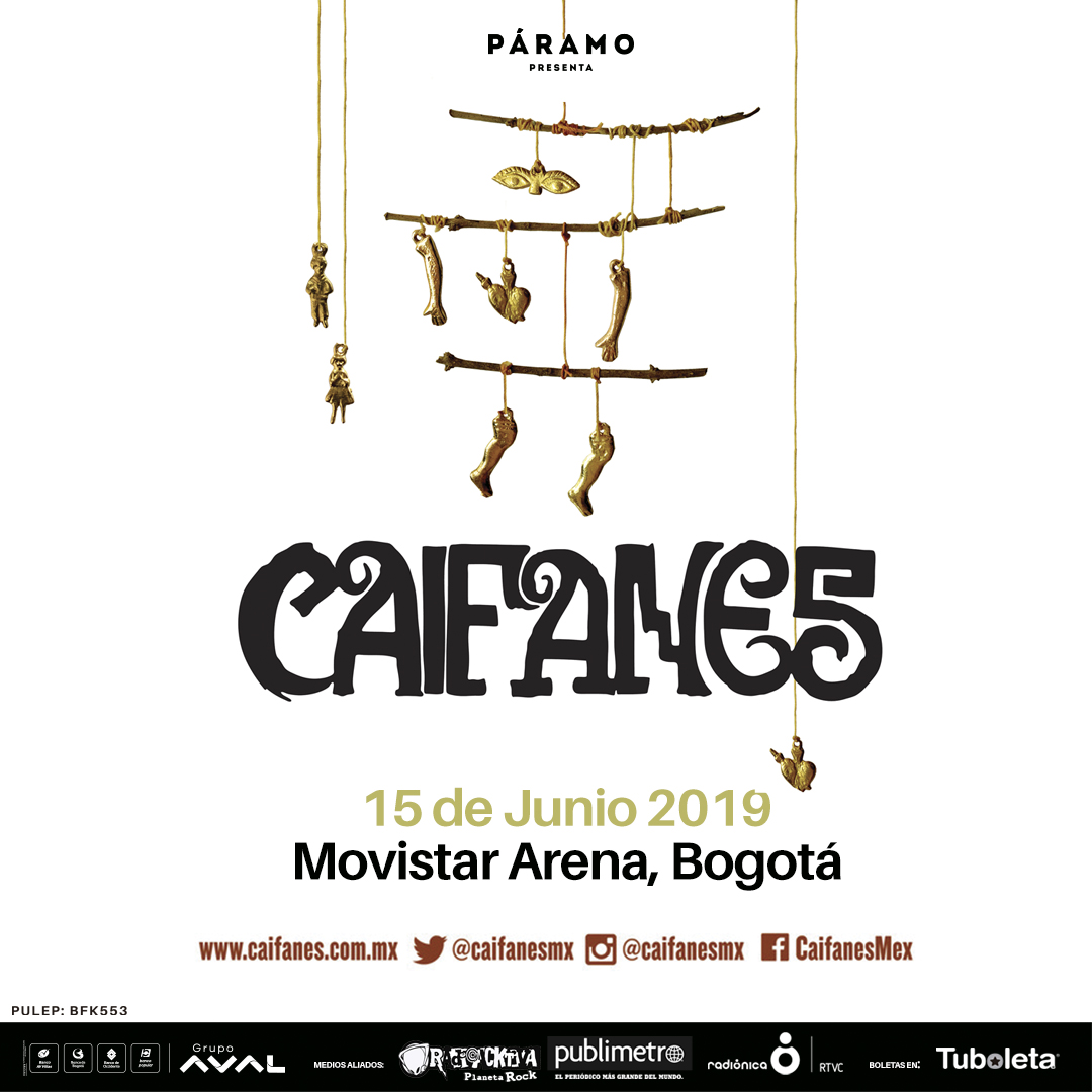 Caifanes, Caifanes. Volumen II, El Silencio y El Nervio del Volcán componen una concisa y poderosa discografía. “Heridos” vio la luz el pasado 8 de marzo como punta de lanza del regreso discográfico de Caifanes. El sonido mantiene su esencia y Saúl Hernández vuelve a invocar a la Raza. El primer sencillo del nuevo disco de la banda promete sumarse a himnos en español como “Maténme porque me muero”, “Viento”, “La negra tomasa”, “Los dioses ocultos”, “Nubes”, “No dejes que…”, “Afuera”, “Ayer me dijo un ave” y más. La noche del 15 de junio Bogotá revivirá estos hits, experimentará lo nuevo y todo el espíritu chamánico de Caifanes en una velada histórica.