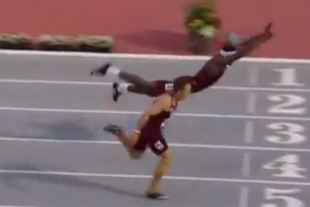 Los Campeonatos de Atletismo de la Conferencia Sureste de Estados Unidos fueron testigos de la maniobra que realizó Tucker al ver que Robert Grant amenazaba su victoria.